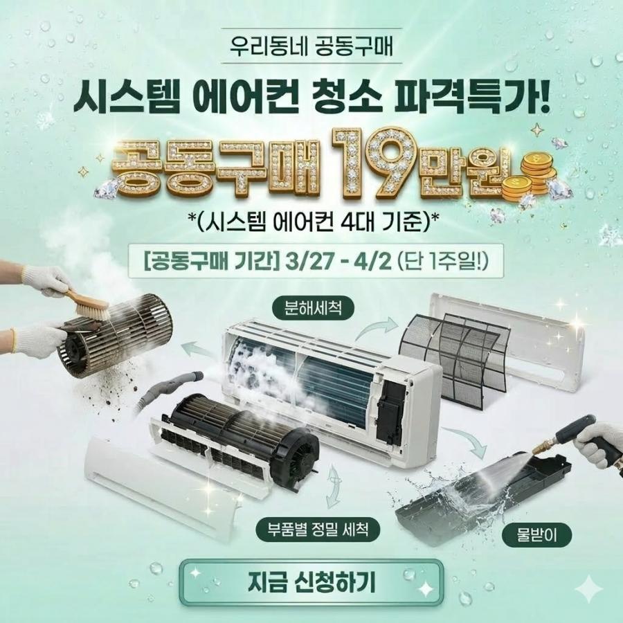 최저가 보장! 시템에어컨 청소 공구 오픈!